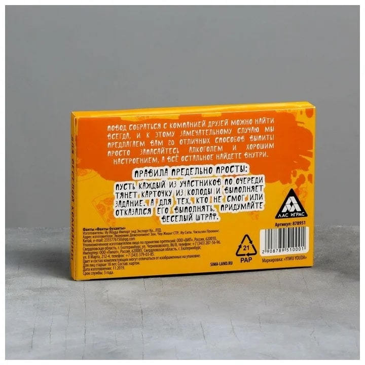Купить игра для компании "фанты буханты" 20 карт от 100 руб. с доставкой до пункта выдачи в Домодедово. Интернет магазин ДекаМаркет. Оплата при получении.